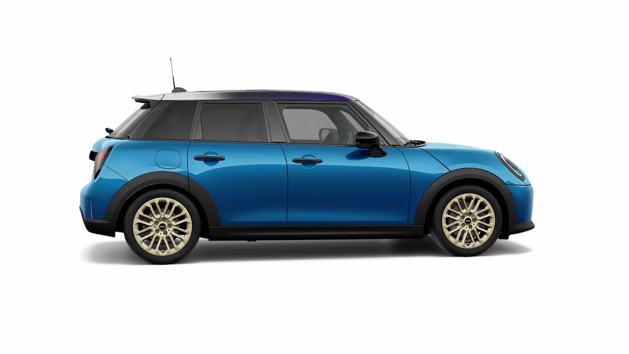 La nouvelle MINI Cooper 5 portes affiche un design audacieux et moderne, des surfaces épurées et un empâtement court. Le tout est brillamment souligné par les emblématiques feux avant ronds et adaptatifs et la calandre plus aérodynamique.
